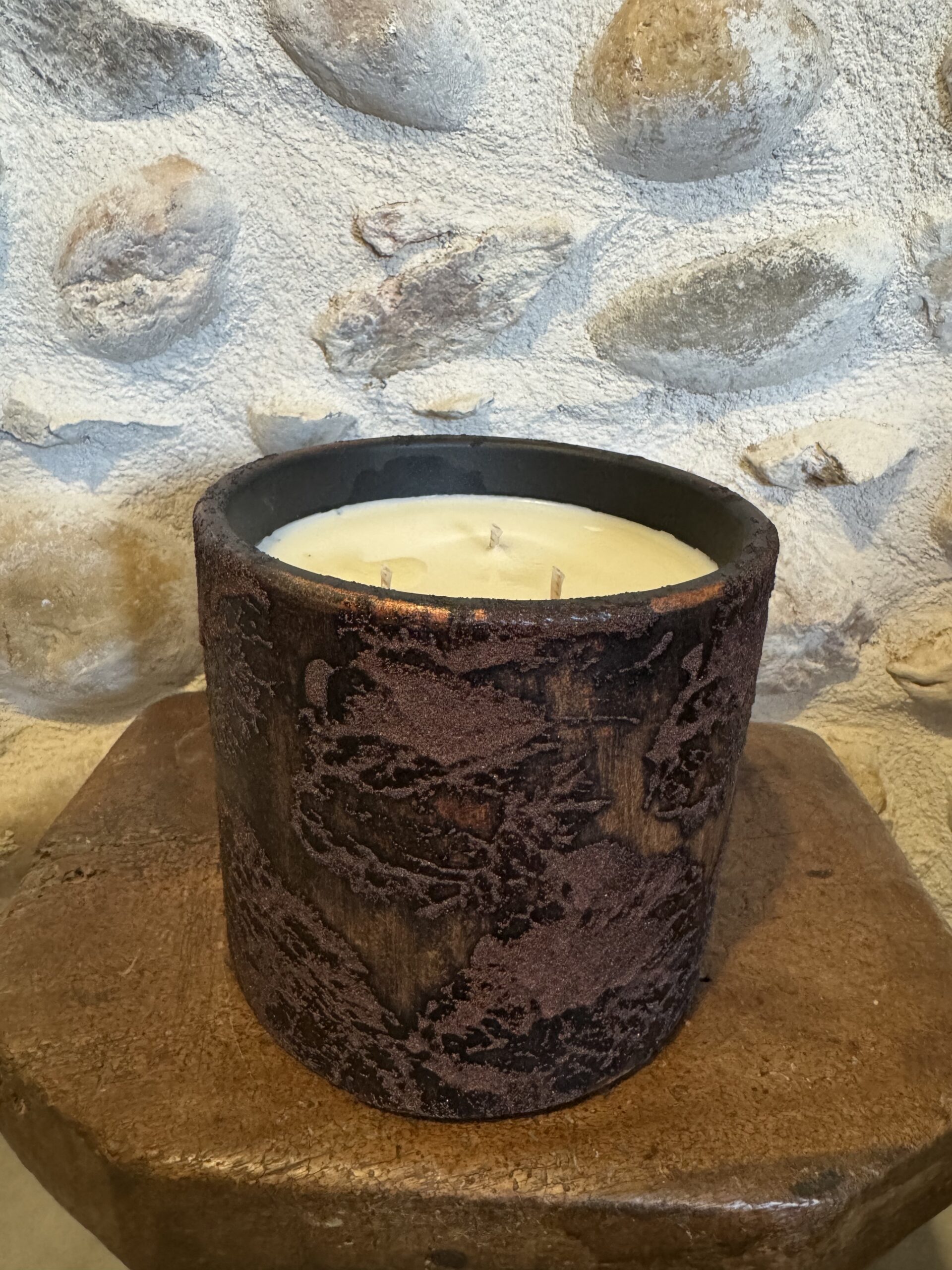 Bougie parfumée à base de cire 100 % végétal et de parfums de Grasse. Elle contient trois mèches cotons qui optimise sa combustion et valorise sa performance olfactive.
